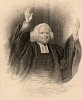 Anglican clergyman and Methodist preacher, born at the Bell Inn, Gloucester on 16 December 1714, the seventh child of Thomas and Elizabeth Whitefield. Childhood measles left him with a squint, which later earned him the nickname 'Dr. Squintum' among his detractors. He went to the Crypt School ands then to Pembroke College, Oxford as a servitor and was introduced to the Holy Club by Charles Wesley. Deeply moved by reading Scougal's Life of God in the Soul of Man, he found personal assurance of salvation during a Lenten fast in 1735. Ordained in 1736, he began preaching in London with almost instant success and was attended everywhere by crowded congregations. It was the same when he commenced preaching in Bristol in January 1737. Returning to Bristol after his first visit to America, he began to preach out-of-doors in February 1739. He encouraged both John and Charles Wesley to this 'field preaching' that same year. On April 29 1739, now excluded from the London churches that had formerly welcomed him, he took his stand in the open space of Lower Moorfields. The huge crowd that attended was a harbinger of the vast congregations that flocked to his preaching in England, Scotland and America for the next thirty years. In 1741 he married Mrs. Elizabeth James, a widow of Abergavenny, despite her engagement to Howell Harris.